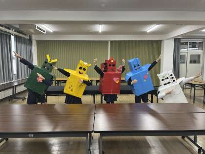 ロボットたちの活躍のおかげで、たくさんの子どもたちが「えがおで あいさつ」できました。