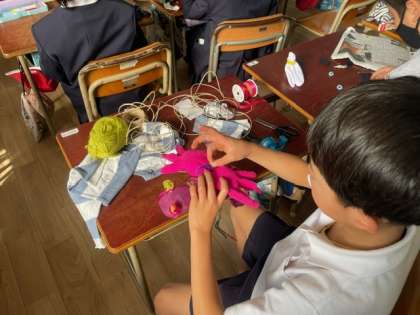 つける、とめる、つめるなど…。いくつかの技を組み合わせ、衣服の特徴を生かしたり、作りたい形に近づくように試行錯誤したりしながら、新しい仲間を作りました。