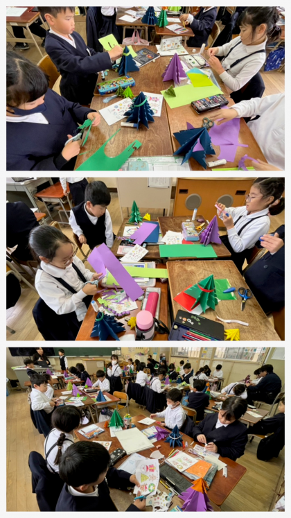子どもたちは、ありがとうの手紙を書いたり、クリスマスツリーを作ったりしていました。