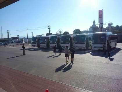 みんな、バスから降りて、体を伸ばしたり、トイレに行ったり、リフレッシュしています。