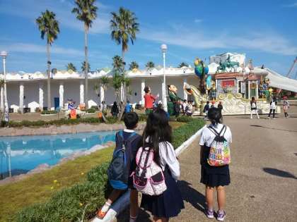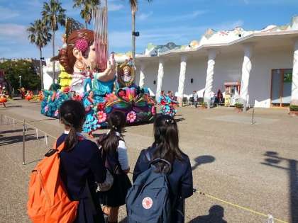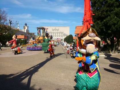 昼食の後、志摩スペイン村のはなやかなパレードを見ているグループもありました。