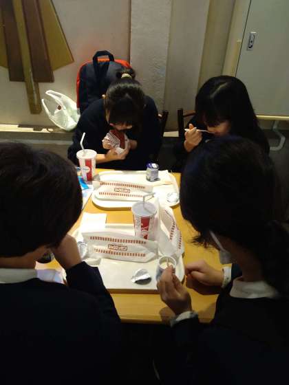 混雑の時間も考えながら早めの昼食をとるグループも見られます。