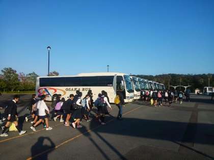楽しかった志摩スペイン村での活動が終わり、予定通り宿舎に向かって出発します。