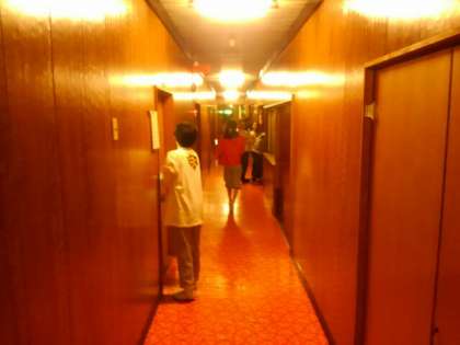 海辺にあるクラシカルな宿です。子どもたちは避難訓練を終え、夕食までしばし部屋で休息中。