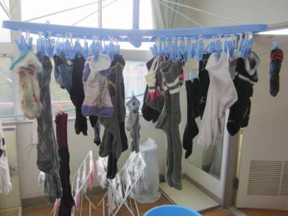 家庭科の学習で汚れた靴下の洗濯をしました。