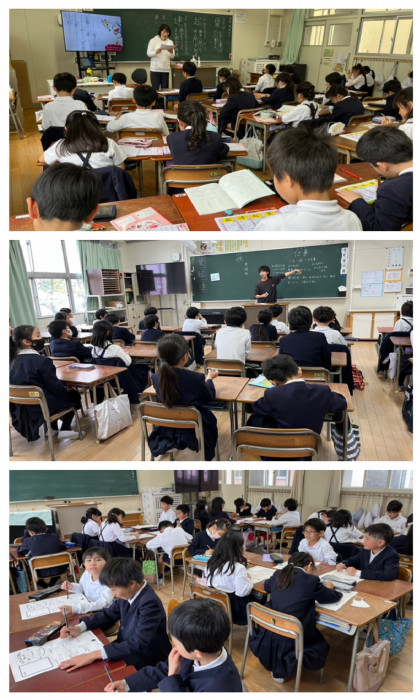 3年生は、新出漢字を学習していました。また、係活動の役割を決めたり自己紹介カードを書いたりしていました。子どもたちは、みんなよく頑張っています。