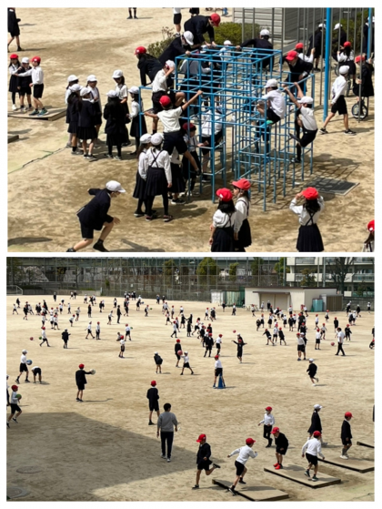 お昼休みには、たくさんの子どもたちが運動場に出て遊んでいました。