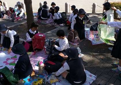 待ちに待ったお弁当タイムです!!友だちと、おいしそうに食べています。