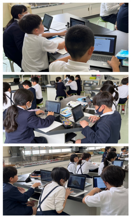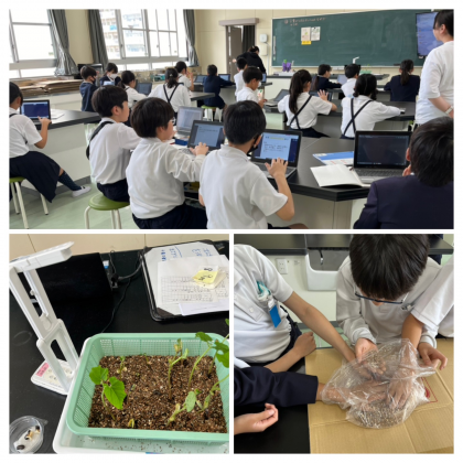 理科の授業で、「子葉がしぼんでいくのはなぜだろうか」という課題について、考えたことをロイロノートにどんどん入力していきました。