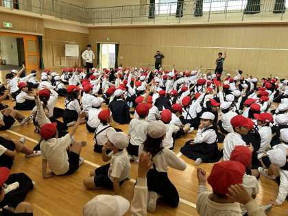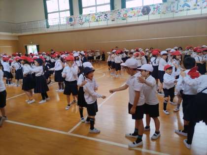 2年生の担任の先生の自己紹介(好きな〇〇について)や学年の歌「スマイルチャレンジ」を元気いっぱい歌いました!また、全員でじゃんけん列車をして遊び、たくさんの笑顔が見られました。