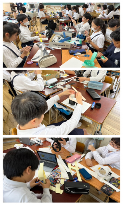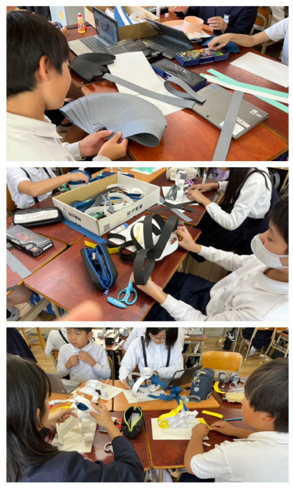 子どもたちは、たわみや曲がりを活かして、全体の形をイメージしながら活動を進めていました。
