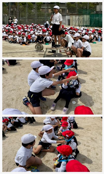 そして、6年生が心を込めて作ったメダルを1年生の首に優しくかけてあげました。1年生はとても嬉しそうにしていました。その姿を見て、6年生も嬉しそうにしていました。