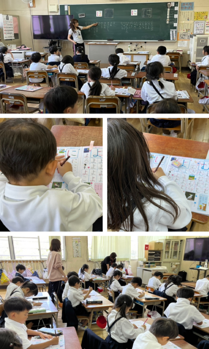 ひらがな「に」と「ほ」を学習しました。「に」と「ほ」から始まる言葉をみんなで考えていました。