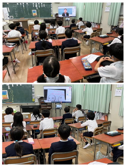 全校朝会(オンライン)で、校長先生が講話をしました。