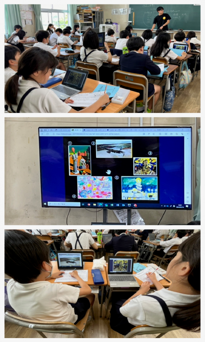 絵の中にかかれた空間を想像しながら作品を鑑賞して、気づいたことや感じたことを鑑賞シートに書いていきました。