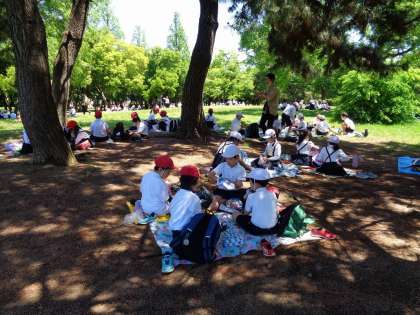 お弁当やおやつを食べるときのルールをきちんと守って、友だちと仲良く食べました。