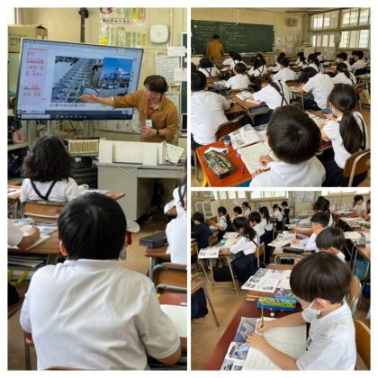 授業では、北部(淀川沿い)、西部(海沿いの埋め立て地)、中部(東大阪市、八尾市)、南部(泉大津市、和泉氏、泉佐野市)の4つのエリアについて学習しました。