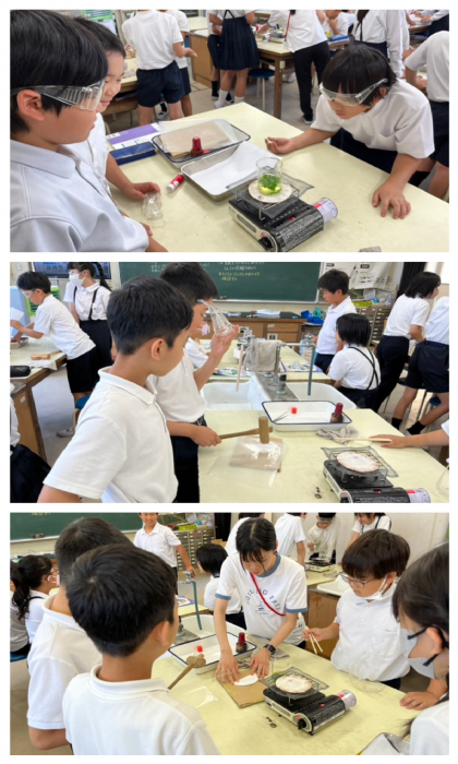 班で協力して、安全に実験をしました。実験後には、結果をワークシートに書きました。