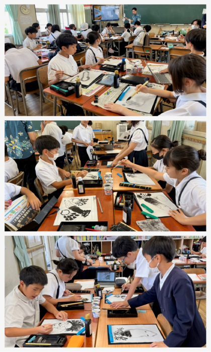 6年生は、墨を使って半紙に絵をかきました。墨の濃淡、にじみやかすれを使って、工夫しながら進めていました。