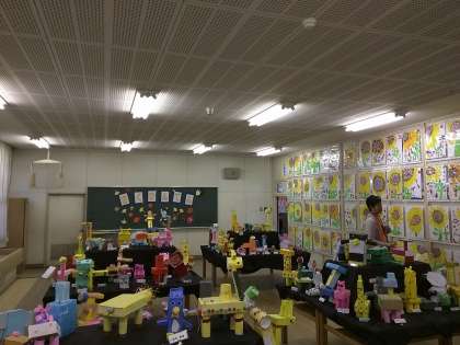 さっそく作品展でほかの学級、学年の作品を鑑賞しています。