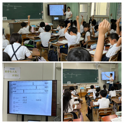 数直線の数を読みました。1めもりが100万や1000万といった大きな数の数直線を学習しました。