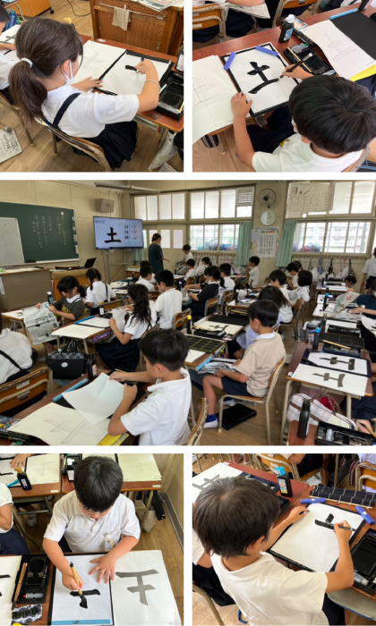 昨日も3年生が毛筆をしている写真を掲載しましたが、今日も別のクラスで毛筆をしていました。どのクラスもとても丁寧に取り組んでいます。