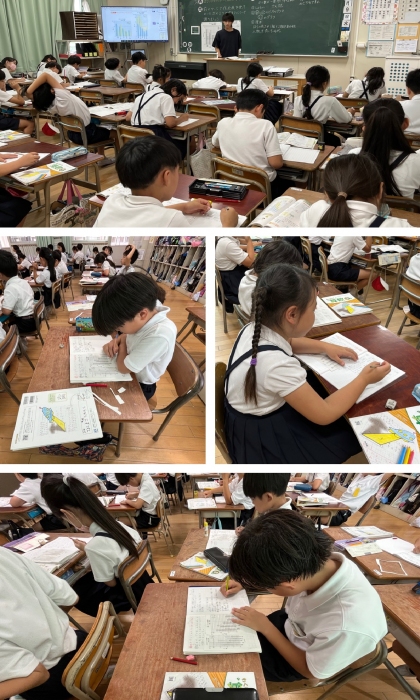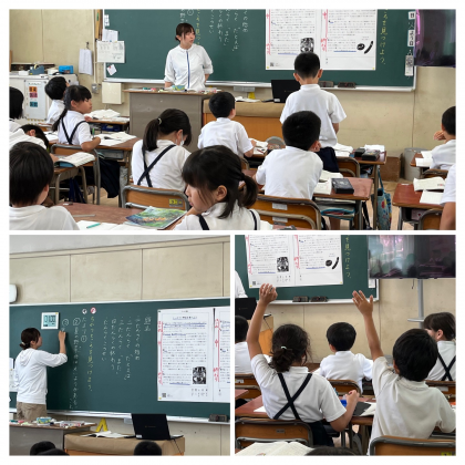 二つの給食だよりの工夫について読み比べ、同じところや違うところを見つけました。