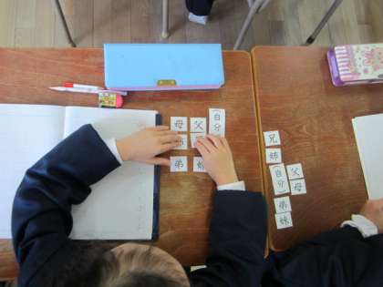 国語の「なかまになることばをあつめよう」の学習で、子どもたちが「父」「母」「兄」「姉」「弟」「妹」「自分」などの言葉を書いたカードの仲間分けをしました。この活動を通して仲間になるキーワードや仲間分け仕方について考え、グループやクラス全体で話し合いました。