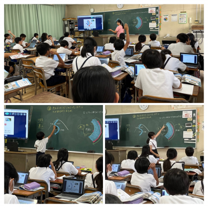 タブレットを使って考えたり、前に出て自分の考えを発表したりしました。
