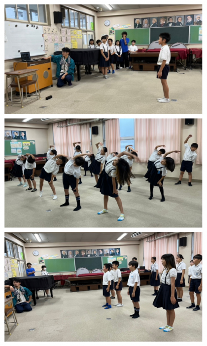 運動委員の児童は、この日に向けて正しいラジオ体操をしっかり練習していたので、一人ひとりがリズムに合わせて動き、とてもかっこよかったです。