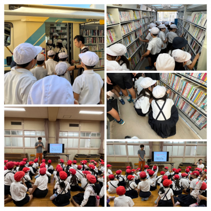 また、多目的室では移動図書館の説明を聞いたり、図書館クイズを考えたりしました。