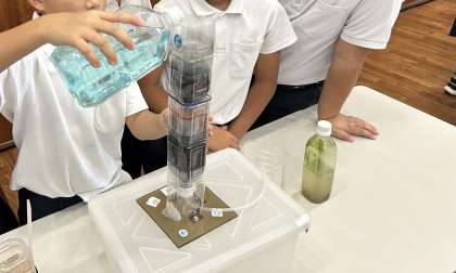自分たちが普段飲んでいる水道水がどのようにして、飲み水になっているのか、話を聞いて目で見て、しっかりと見学することができました。また、児童1人ひとりが水をろ過する実験をすることで水がきれいになっていくという体験をすることができました。楽しく学ぶことができとても嬉しそうでした。