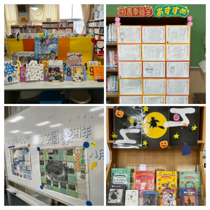 図書室に入ると、分類番号ごとに本が展示していました。また、その横には図書委員会おすすめの本を紹介した文が掲示していました。