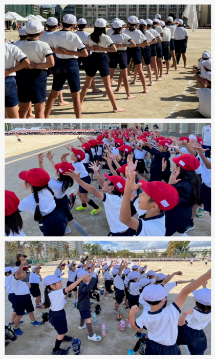 開会式でのラジオ体操は、前回よりも上手になっていました。特に1年生は、何回も練習をしていたので、その成果が出ていました。
