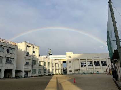あさ、いっしゅんですが にじが出ました。