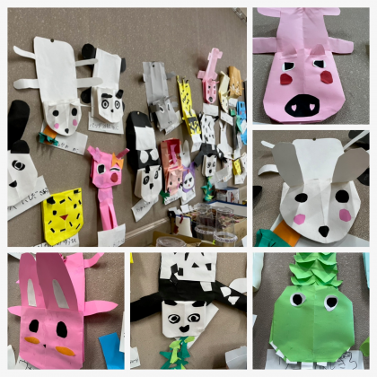 子どもたちは、切り方や貼り方を工夫したり、動かして楽しいパクパクさんを考えたりしてつくりました。