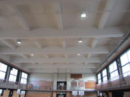 11月の初めから始まった講堂の天井の工事がほぼ終わりました。新しくなった天井にはLEDの電灯がつき、今まで以上に明るくなりました。明るさの調光もスイッチ一つで可能になり、とても使いやすくなりました。