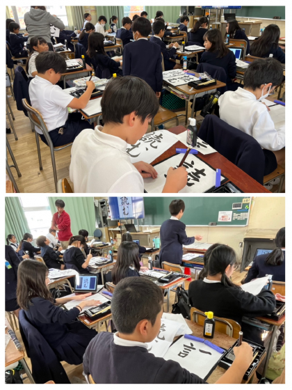 漢字と仮名の文字の大きさに気をつけて書きます。どの子も、真剣に取り組んでいました。