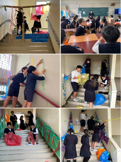 6年3組は、図画工作科で造形あそびをしました。