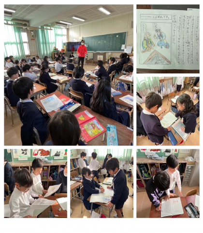 2年3組では、物語文「かさこじぞう」を紹介カードにコメントを書いて単元の振り返りをしていました。
