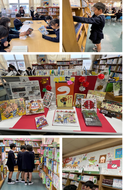 子どもたちにとって、本を選ぶのも楽しみの一つです。また、図書室もすっかり新年を迎えた掲示になっていました!