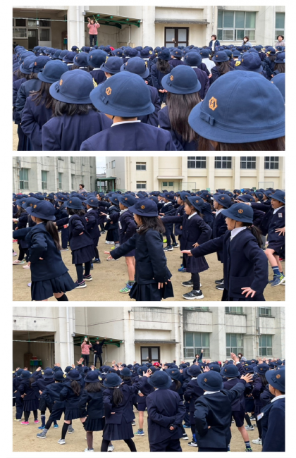 児童朝会の後、1年生は「6年生を送る会」で歌う歌と振り付けの練習をしました。