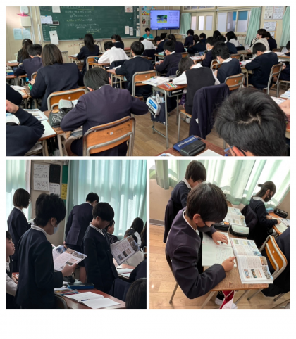 6年7組では、社会科で日本や国際社会には、どのような問題があるか調べました。