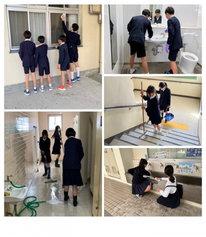 6年生が、今までの感謝の気持ちを込めて、校内清掃をしていました。毎日の掃除では、なかなか行き届かないところまで、ていねいに掃除をしてくれました。