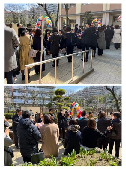 卒業式の終了後には、教職員と保護者で作った花道を卒業生が通り抜けました。