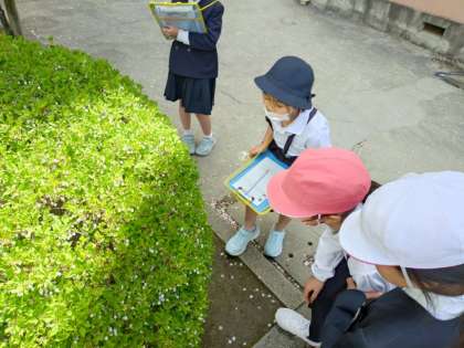 最近、5年生では玄関に出て様々な生き物を観察しているようです。