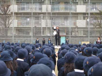 今朝の児童朝会で校長先生が節分の豆まきのいわれについてお話されました。