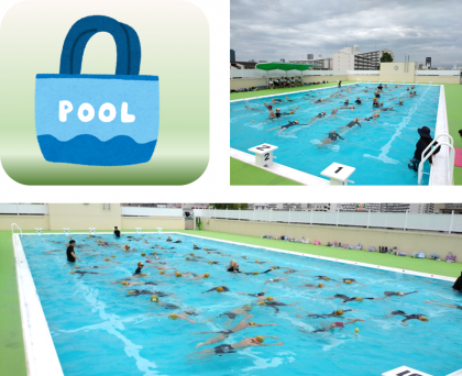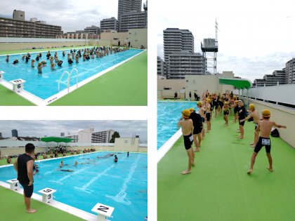 水面での姿勢の保持や蹴伸び、バタ足などの指導をしっかり聴きながら、がんばって運動していました。