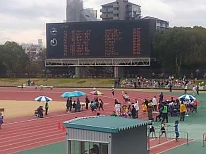 長居第2陸上競技場と周回道路にて、府下の小学校76チームが集まり、第7回おおさかこどもEKIDEN大会(府教育委員会主催)が行われ、友渕小からは、8名1チームの駅伝に2チーム16名、チャレンジランに6名、計22名の6年生が参加しました。