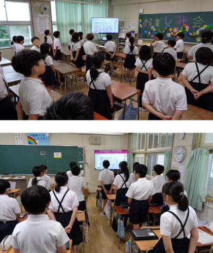 続いて3年7組、6年4組の児童が代表として、1学期にがんばったことを発表してくれました。